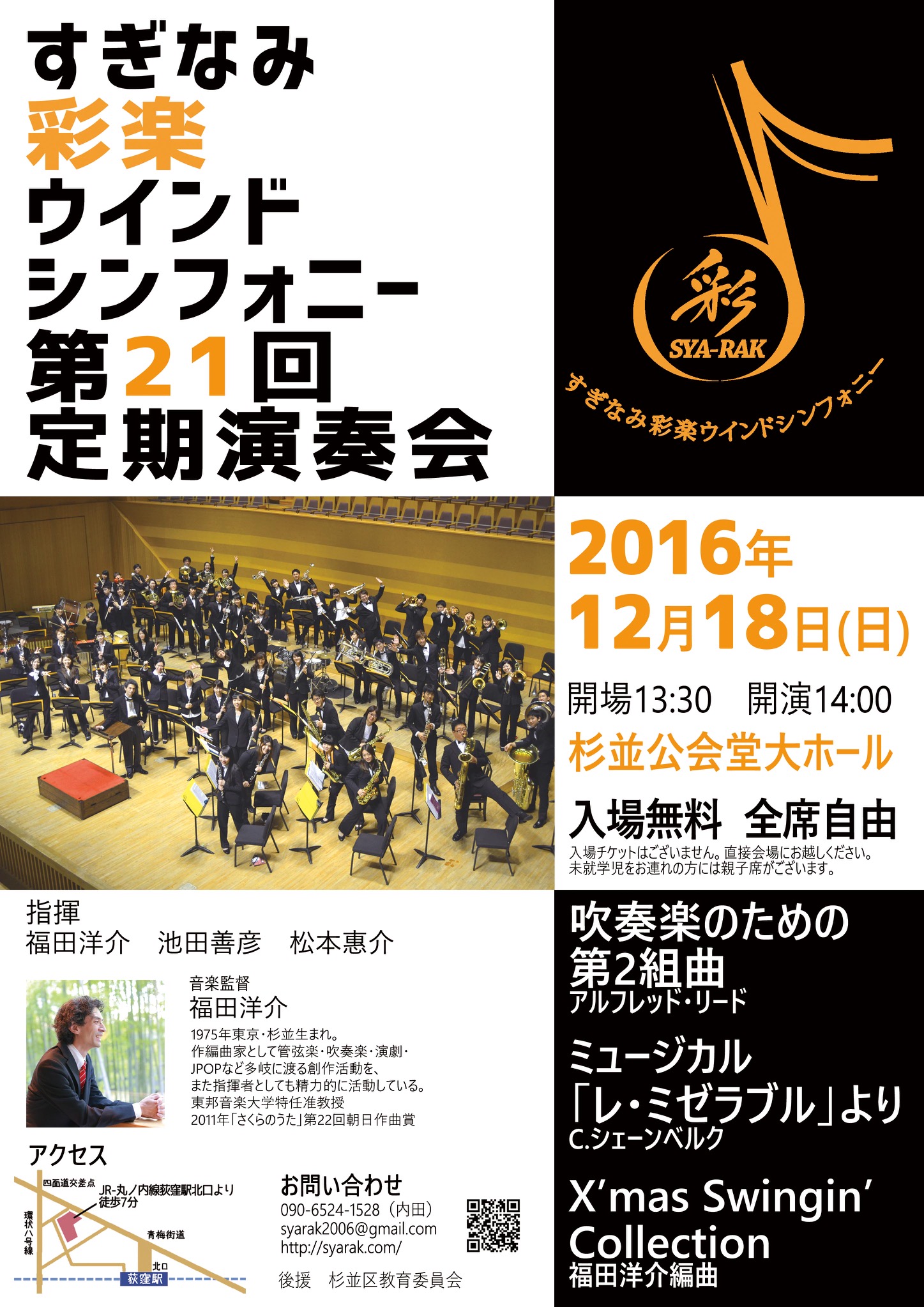 第21回定期演奏会は2016年12月18日(日)杉並公会堂大ホール14時開演です。
